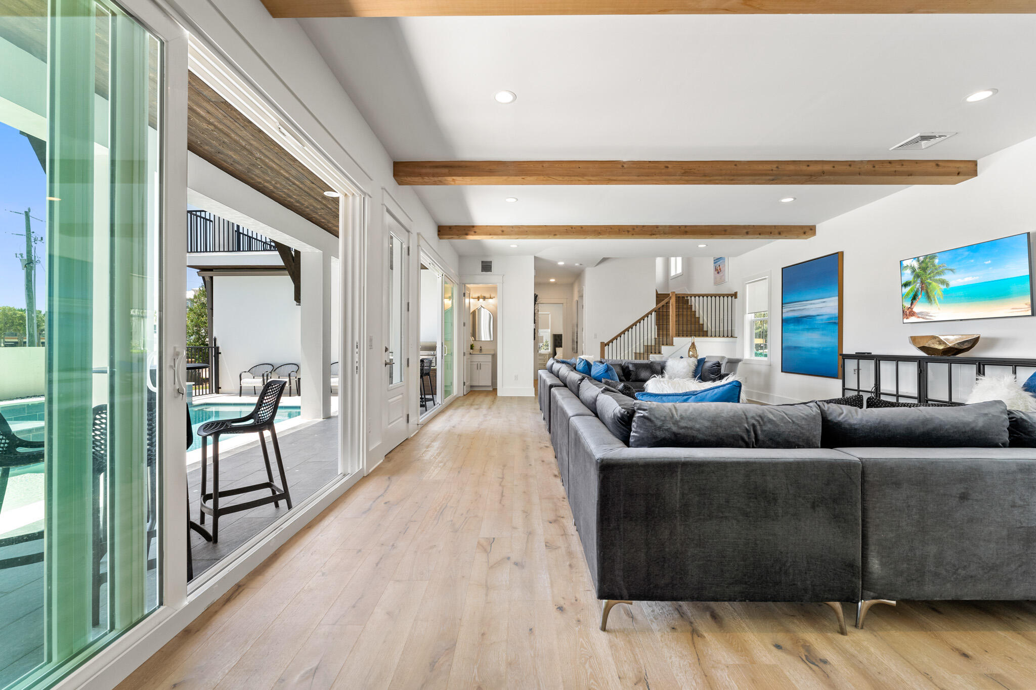 Located just steps from the turquoise waters and the white quartz sand beaches of Florida's famous Emerald Coast, this spacious home can accommodate extra large groups by comfortably sleeping 24; making it ideal for exclusive retreats, rentals, and events This extraordinary home is situated across from the sought after Gulf Place District of 30A.